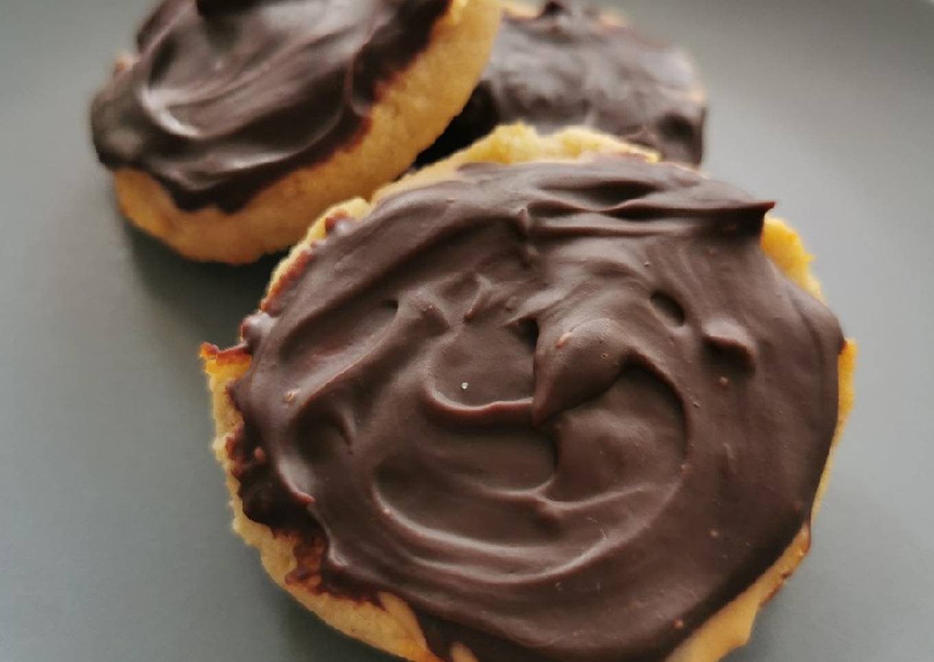 - Faites fondre chocolat et lait de coco au micro onde. Ajoutez 1 cuillere à café ou 2 sur chaque biscuit.