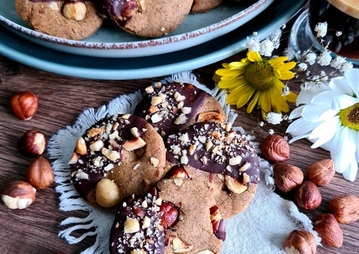 Trempez les biscuits dans du chocolat fondu, saupoudrez de noix concassées et placez-les sur une feuille de papier sulfurisé et laissez-les bien sécher avant de servir. - Vos cookies vegan et sans gluten sont prêts à être dégustés !!!