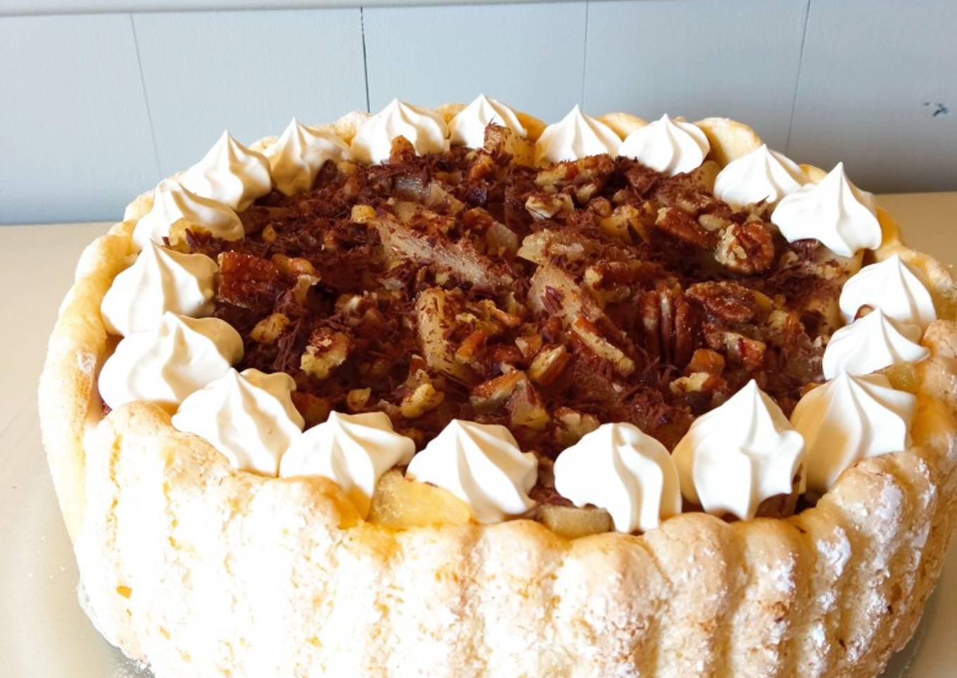 Instructions to make to make Charlotte poire, caramel et noix de pécan