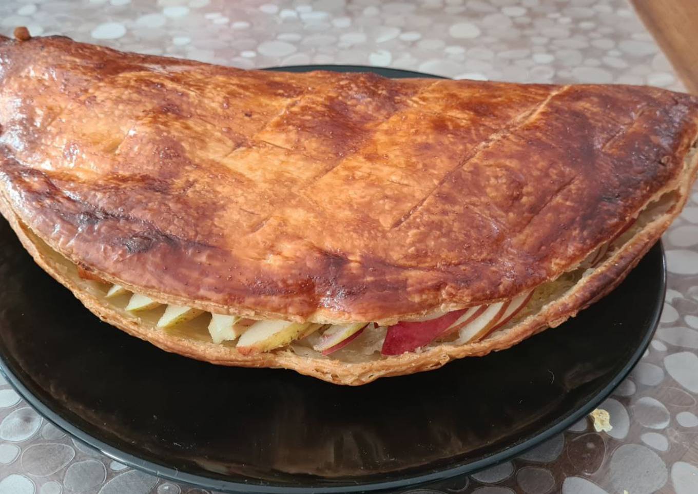 - À la sortie du four ouvrir le chausson en décollant délicatement la pâte au niveau des bords et laisser refroidir