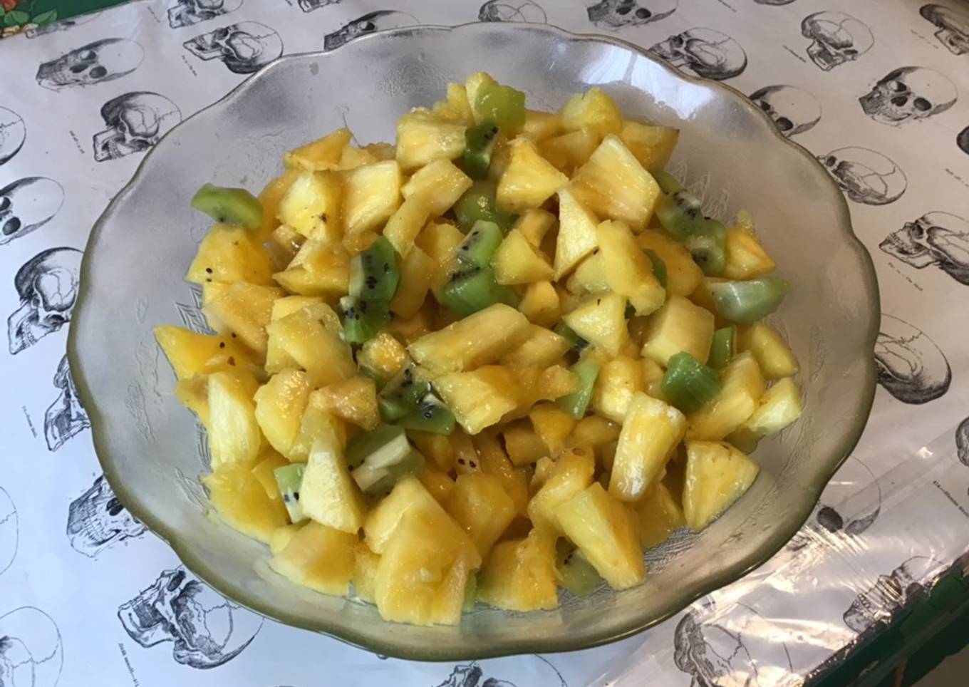 Salade d'ananas aux kiwis et jus de pêches