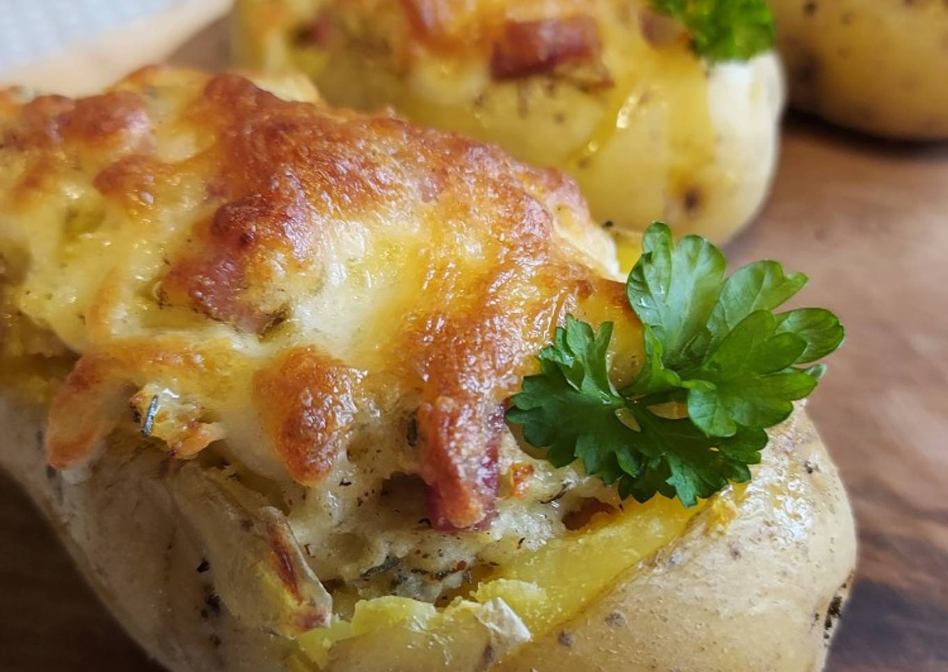 Pommes de terre farcies Mozarella et Lardons, Pdt Macaire